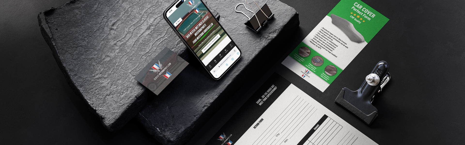 Na onze eerste kennismaking was het meteen duidelijk: dit werd een samenwerking vol energie, ideeën en snelheid. Voor Houben Classic Cars mochten we aan de slag met een krachtige mix van branding, drukwerk, webdesign en social content.